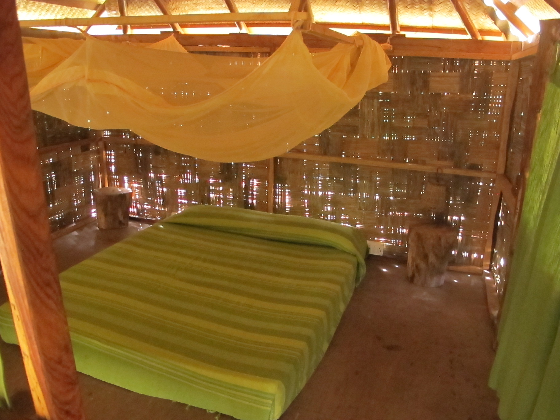 Please remember, our resorts are eco-friendly resort and therefore have limited facilities. We also take pride in being environmentally friendly and hence do not have air-conditioning, TV’s, Internet and telephones. We try and reduce the impact tourism causes on our little piece of paradise as much as we can. Therefore our Policy is against surplus usage of resources. Our property is rustic, made with organic material (bamboo mat walls, thatched roof) and open to nature.
